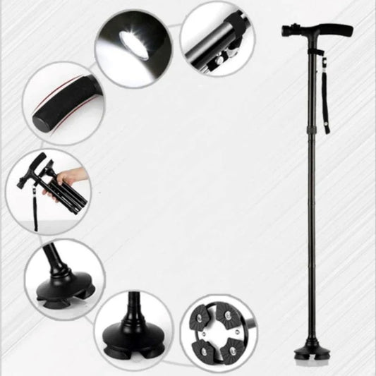 Bastón Plegable Antideslizante 4 Puntos De Soporte Luz Led