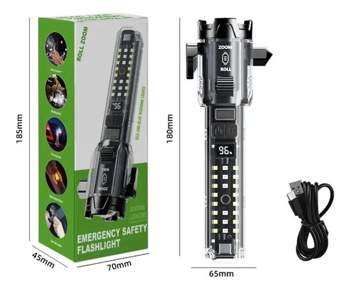 Muchas linternas comunes solo iluminan, pero cuando ocurre un accidente o una emergencia en carretera, se vuelven inútiles. No tienen rompevidrios, no cortan cinturones y mucho menos permiten cargar tu teléfono o emitir una señal SOS confiable. En esos momentos, una linterna convencional no es suficiente.